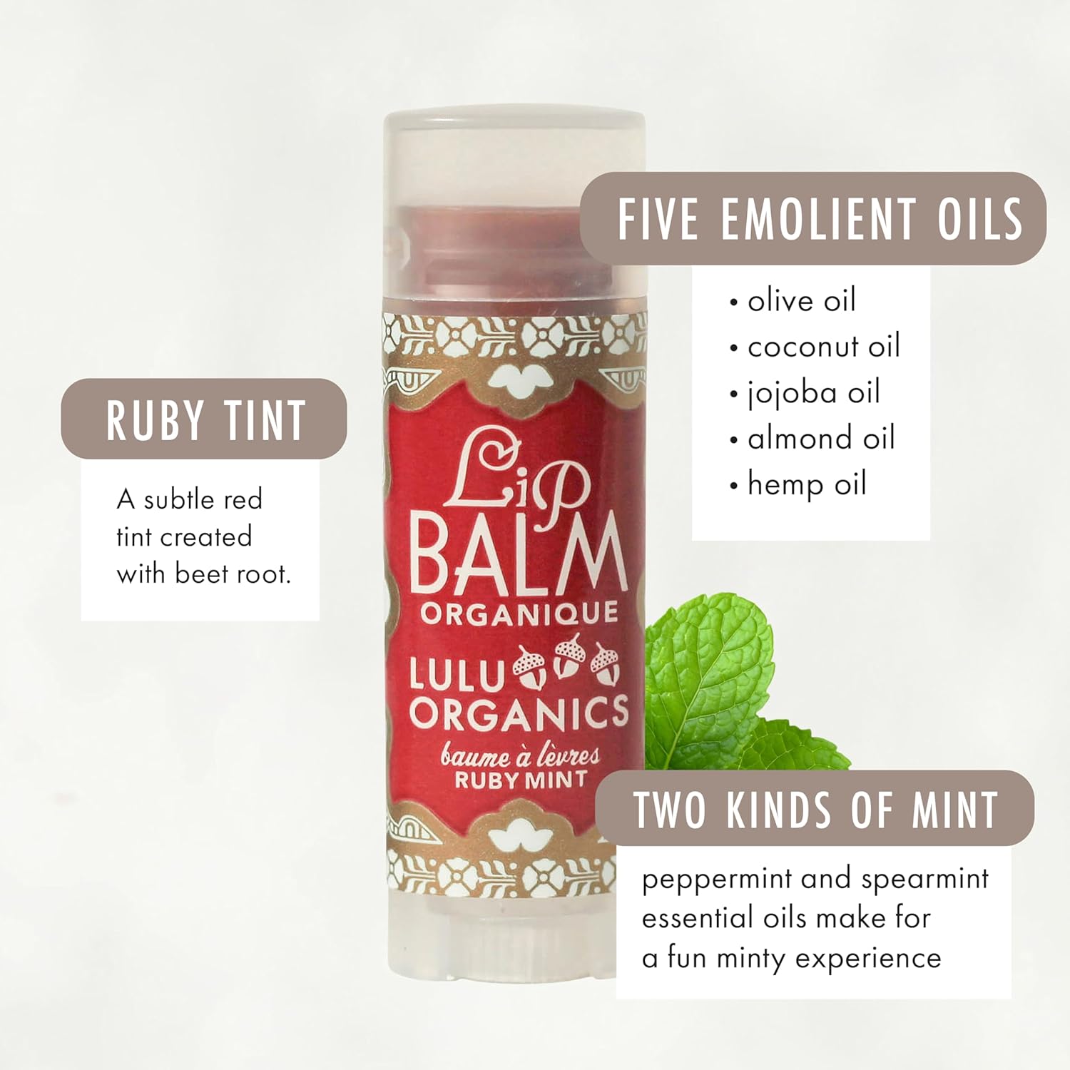 • Unique Elegance and Luxurious Scents: Lulu Organics Lip Balm offers an exquisite ruby mint option, ideal for those who appreciate a refreshing and invigorating scent. This nourishing and moisturizing lip balm is designed to provide long-lasting hydration, making it a standout in your lip care regimen. With its luxurious formula, it sets itself apart from ordinary lip balms, ensuring your lips stay soft and well-cared-for throughout the day.