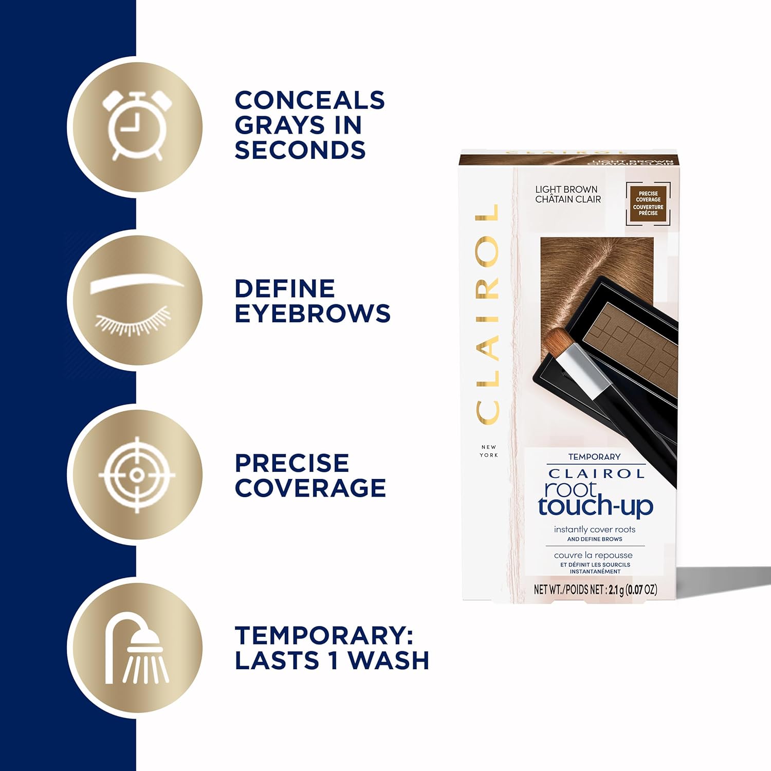 - Product Benefits : Multi-Use Temporary Root Touch-Up Powder instantly covers roots and define brows in seconds!