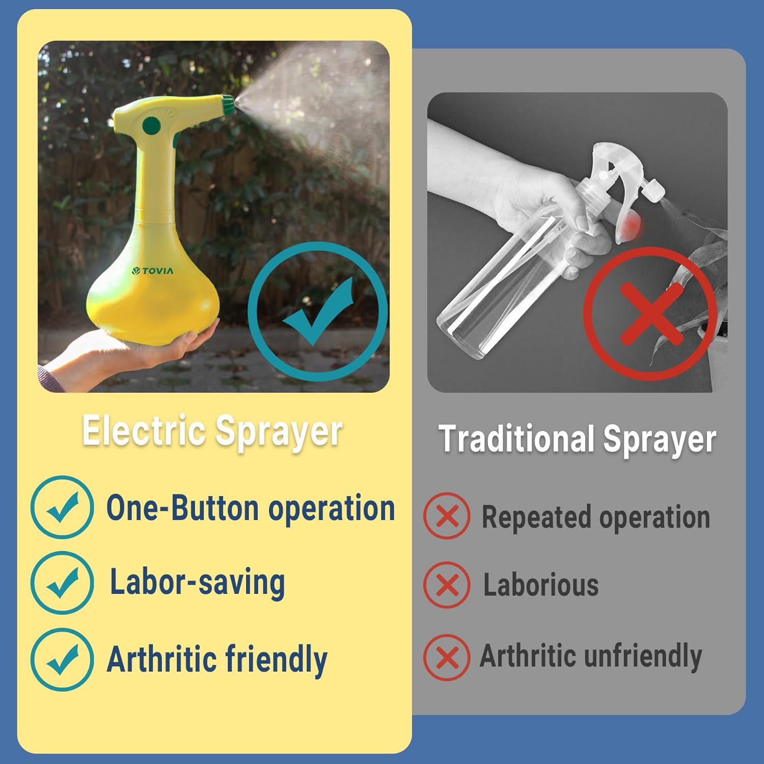 - 【Wide Application】The automatic sprayer is ideal for a wide range of indoor and ourdoor cleaning tasks. Perfect for garden watering, indoor plant mister, weeding, insecticide, disinfection, alcohol, sterilization, air humidifying and glass cleaning, this spray bottle is designed to bring more convenience to daily life.