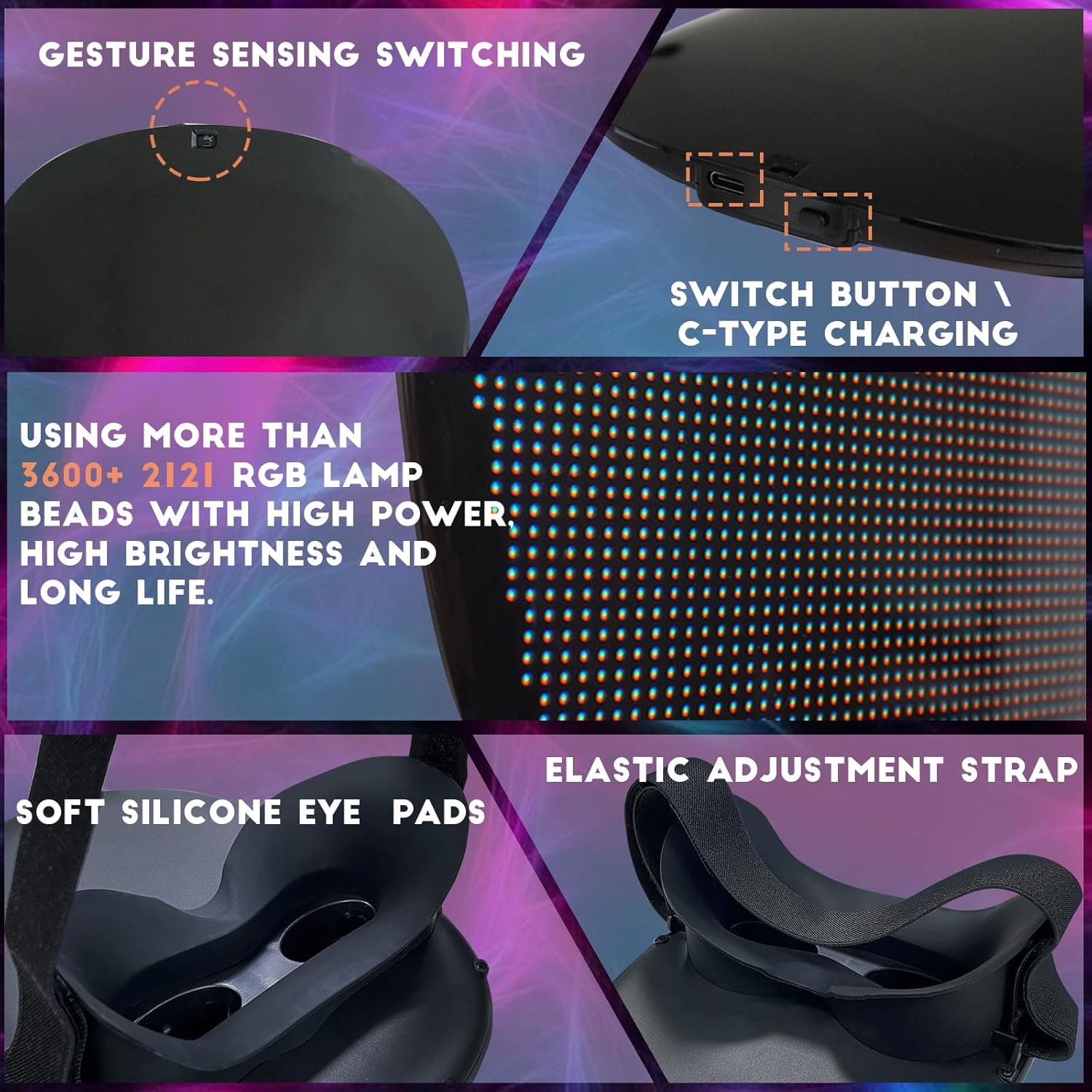 - [Comfortable to Wear and High-Quality]: The design of MOYACA LED Mask takes into consideration the importance of comfort, is both durable and long-lasting, it features silicone mat on the inside, design with the adjustable strap and large eye hole make it suitable for everyone. The bright and vibrant colors, along with the excellent graphics and animations, ensure that you'll grab everyone's attention.