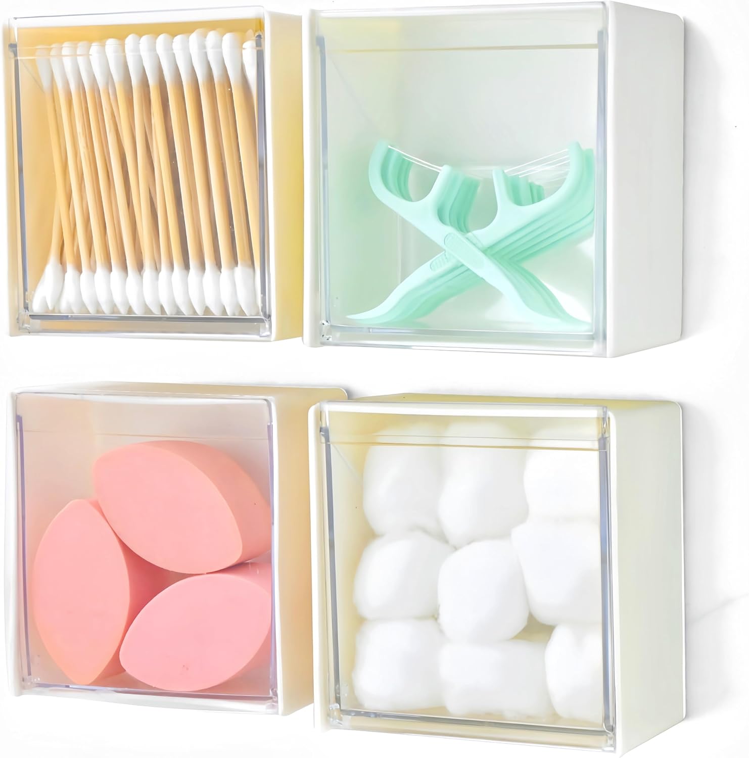- 【Space Saving】 - 4 pack,Qtip Holder for wall, allowing you to utilize wall space more efficiently, you can conveniently store everything while keeping your room organized. It's a great space-saving wall organizer!
